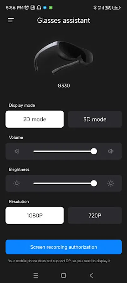 4. Support G330 glasses to cast screen on non-DP mobile phones