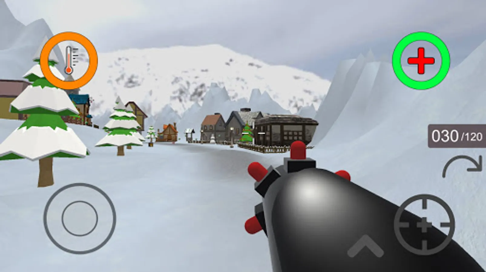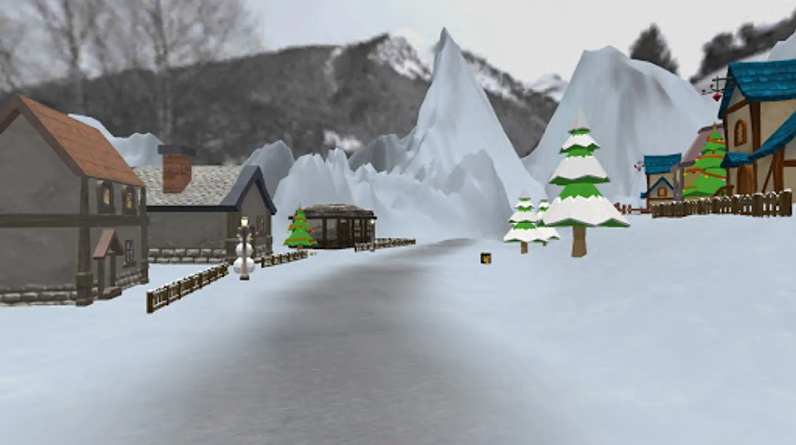 You need to enter the village, kill the viruses, and climb the mountain to reach Santa.