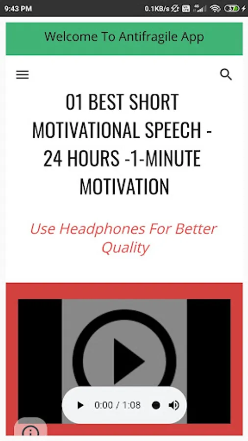 This app contains many Motivational, Inspirational Speeches and Stories in both English and Tamil Languages to start your day with "Antifragile" motivation.
