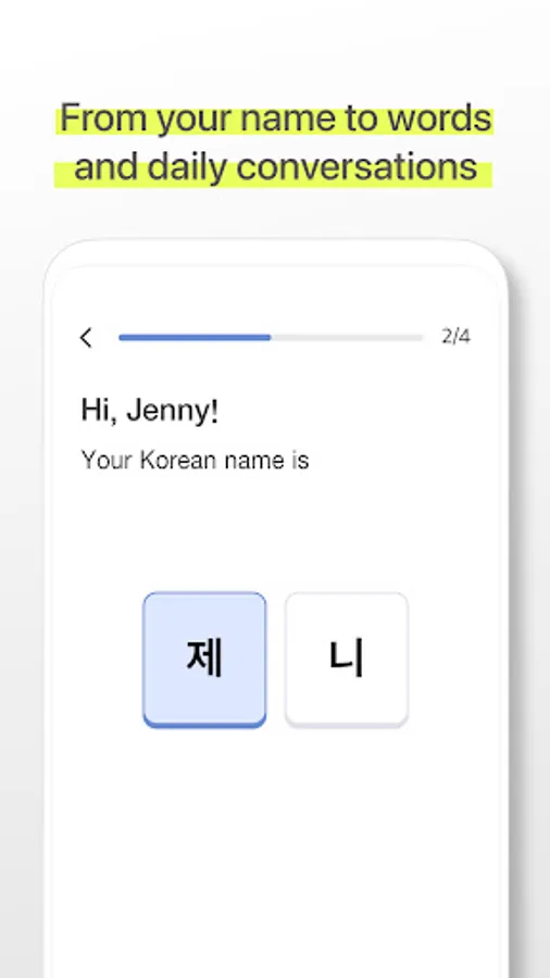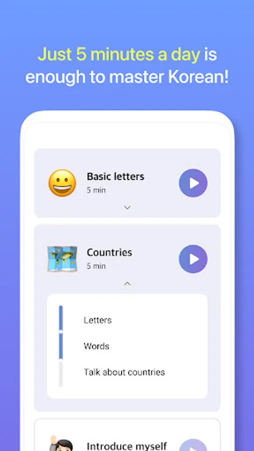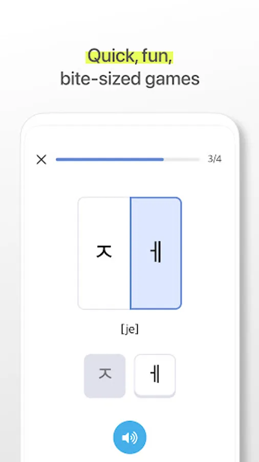 No need to worry about how to learn Korean. From your name to words and daily conversations, you can naturally pick up on Korean by quick, fun, bite-sized games and efficient curriculum of BB.