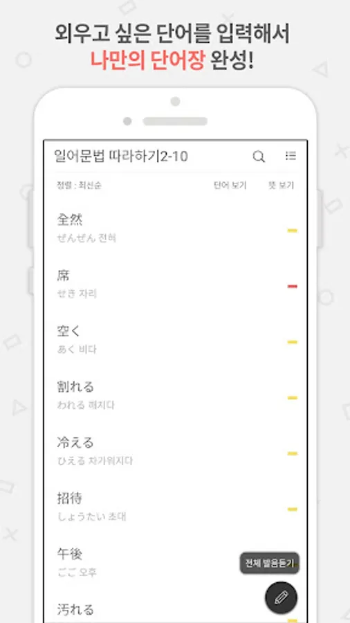 -Create your own vocabulary by entering words / meanings / examples, etc.