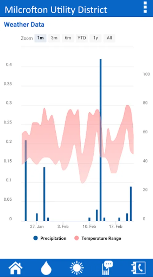 Provides access to utility smart meter information and notifications for Customers of Milcrofton Utility District in Franklin, TN. View usage trends, hourly, daily and monthly meter data, local weather history, leak alerts, usage notifications and other pertinent account information.