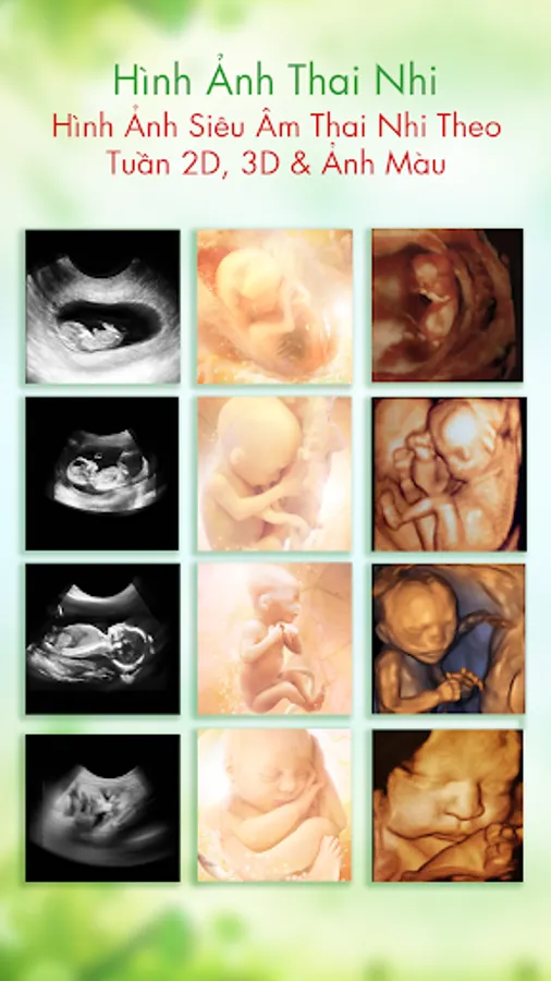 • Theo dõi thông tin thai nhi theo tuần, theo ngày: hình ảnh, kích thước, thông tin cần chú ý.