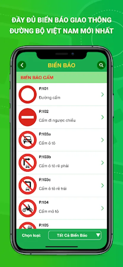 • Hệ thống biển báo đầy đủ giúp bạn tham khảo các biển báo có trong giao thông đường bộ.
