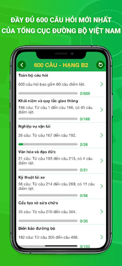 Ứng dụng gồm đầy đủ 600 câu hỏi mới nhất, giúp các bạn chuẩn bị thi bằng lái xe có thể ôn thi phần lý thuyết một cách nhanh chóng và hiệu quả nhất.