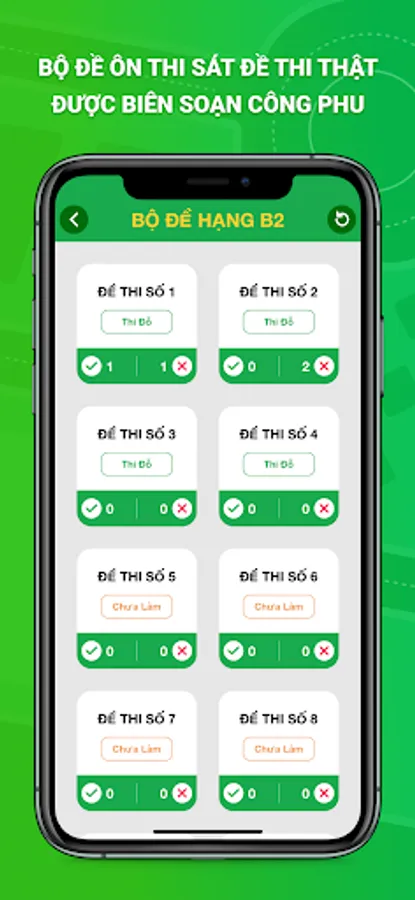 • Ôn thi theo đề ngẫu nhiên hoặc bộ đề thi có sẵn, giúp bạn bao quát toàn bộ các câu hỏi.