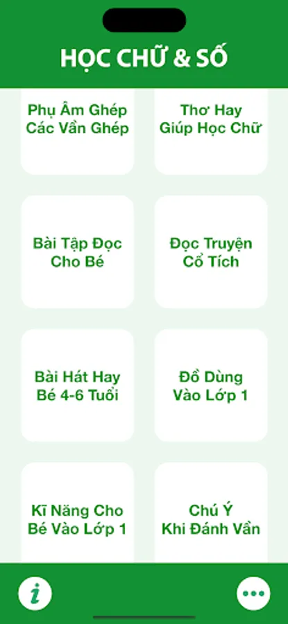 Ứng dụng giúp các con chuẩn bị vào Lớp 1 học chữ cái, chữ số, học đánh vần dễ dàng và hiệu quả. Bên cạnh đó, ứng dụng cũng cung cấp đầy đủ các kĩ năng cần thiết, giúp con tự tin vào Lớp 1.