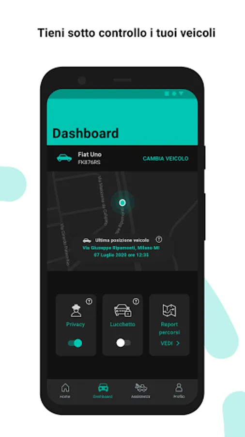 Advanced features: if a GaiaBox has been installed on your car, you will have access to all localization features such as last position, historical routes on the map, kilometer report, movement alarm and much more.