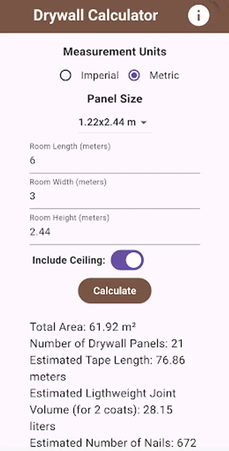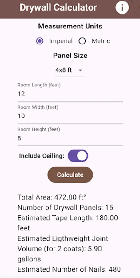 Drywall Materials Calculator Screenshots