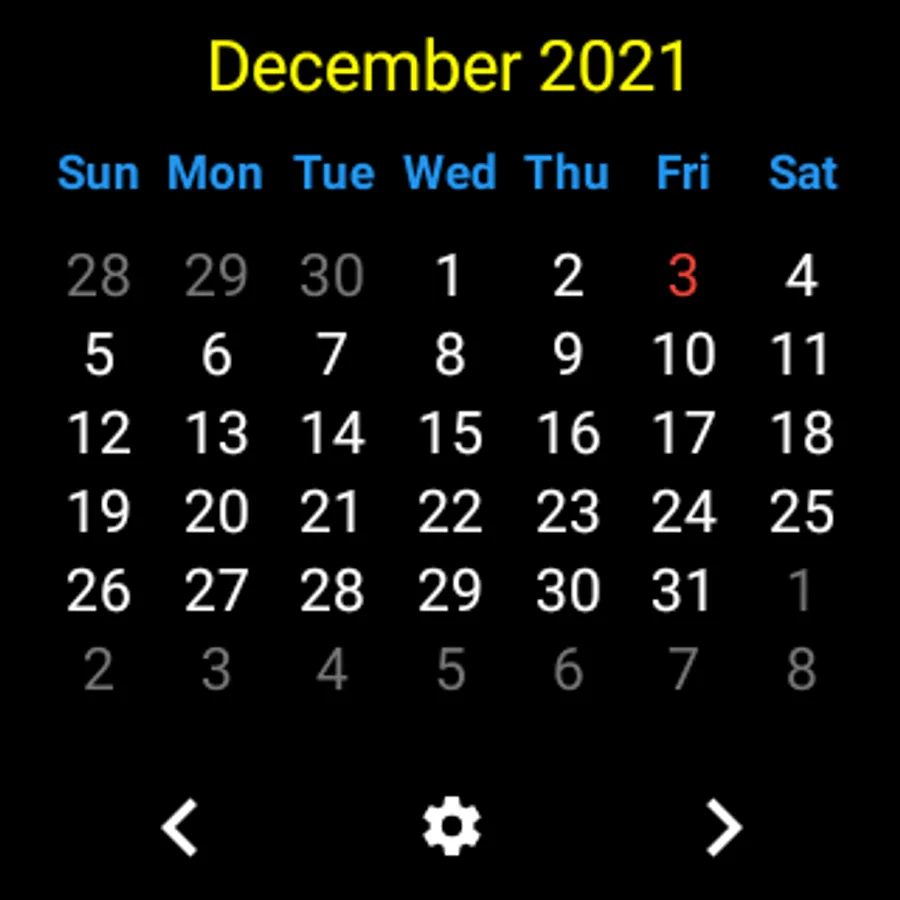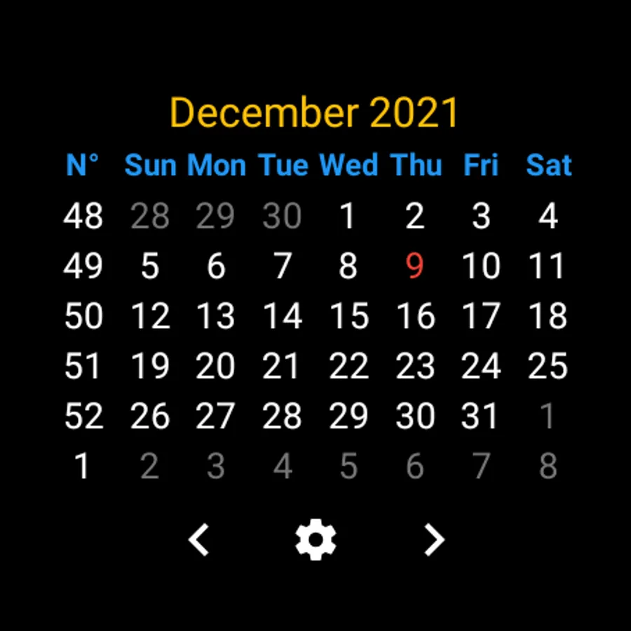 Simple Wear Calendar is a fully customizable standalone calendar for Wear OS 2.0+. Everything from the background color to the color of the days can be customized for both the app and tile.