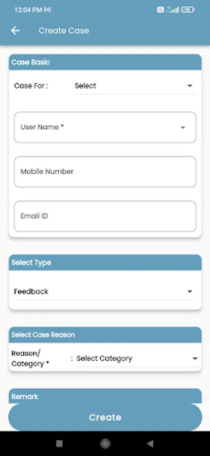 APP used to mange the customer and case creation
