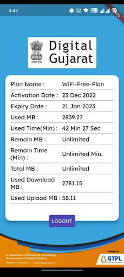 This app is developed to connect free Wi-Fi service provided GTPL at various public places of Gujarat District.