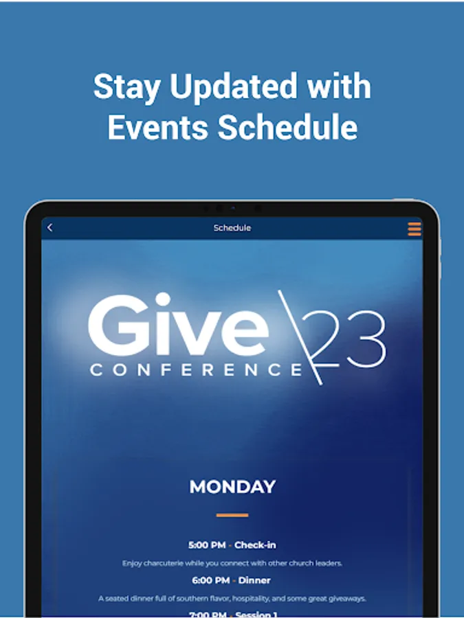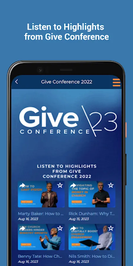 Interact with our Give Conference app to stay up-to-date on all things Give Conference as well as access special features and content while attending.
