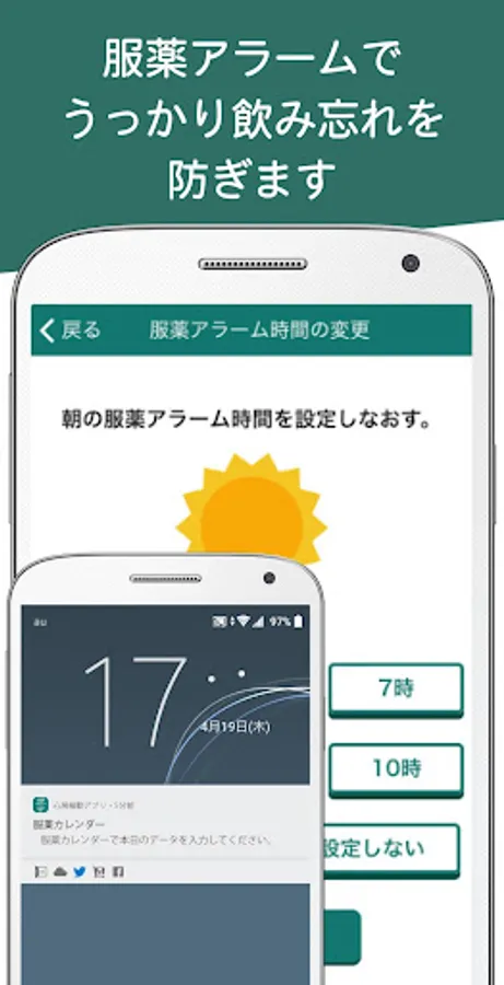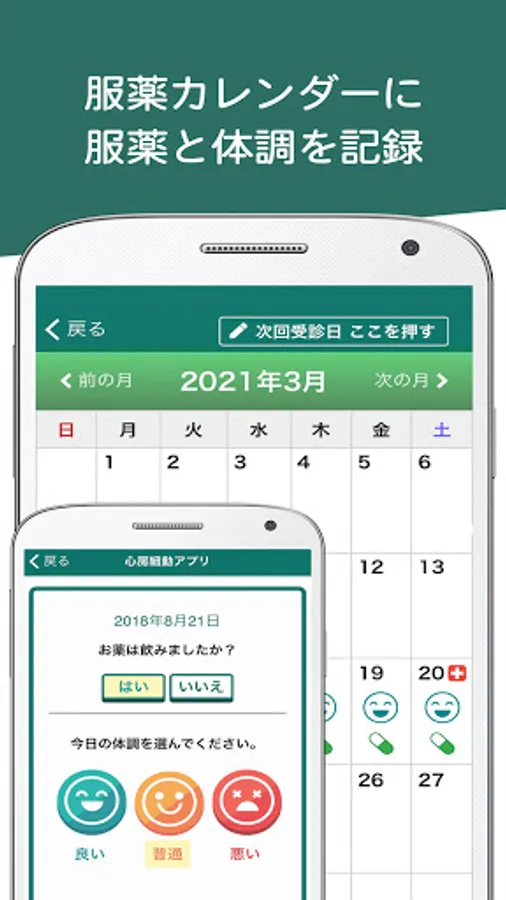 In addition, you can prevent forgetting to take medicine and maintain motivation with a reminder function that notifies you to take medicine at a set time and a calendar function that registers the status of taking medicine.
