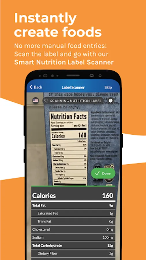 ⭑ Massive Food Database - Search 5+ million foods by name or barcode scan.