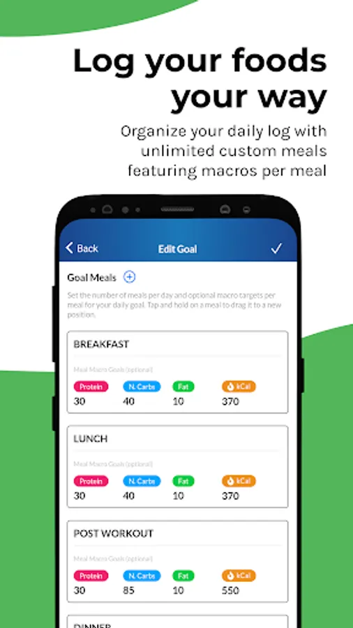 ⭑ Unlimited Custom Daily Meals - Track your daily macros in as many daily meals as you like.