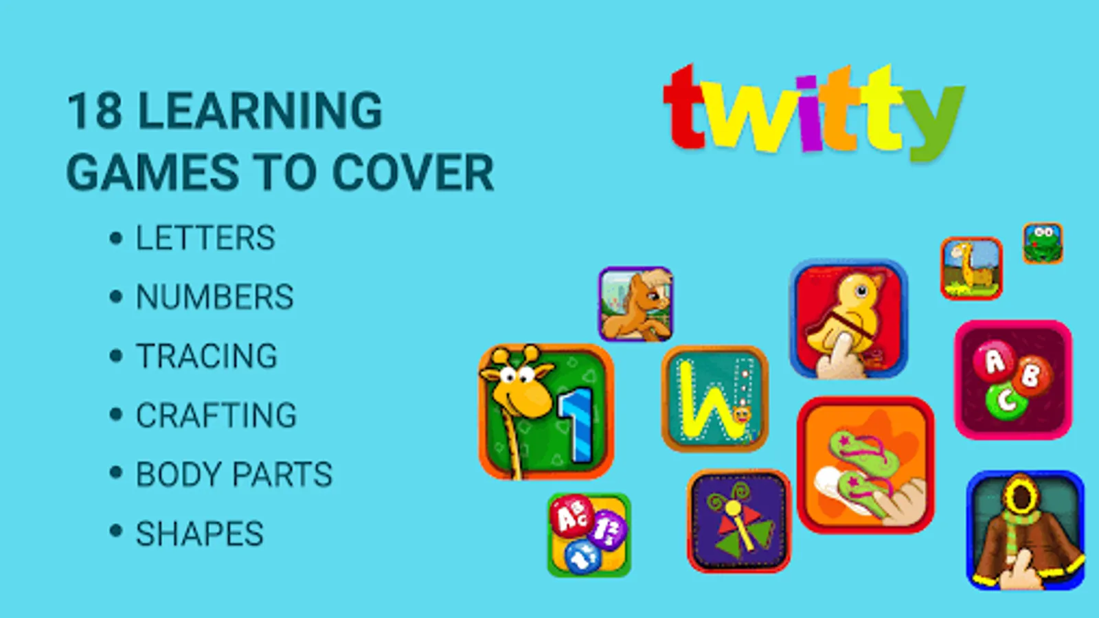 Twitty a pack of 18+ learning Games, for Nursery and Preschool Kids. Twitty includes fun and educational activities to learn alphabets, shapes, numbers, letters, colors, crafting, reasoning and many more for kids.