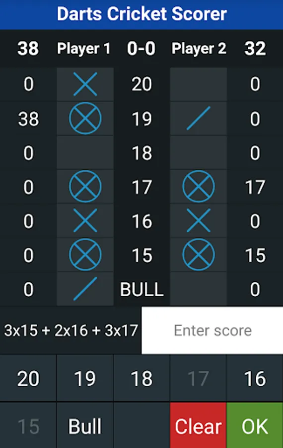 With Darts Cricket Scorer you can keep your scores for the darts game called Cricket.
