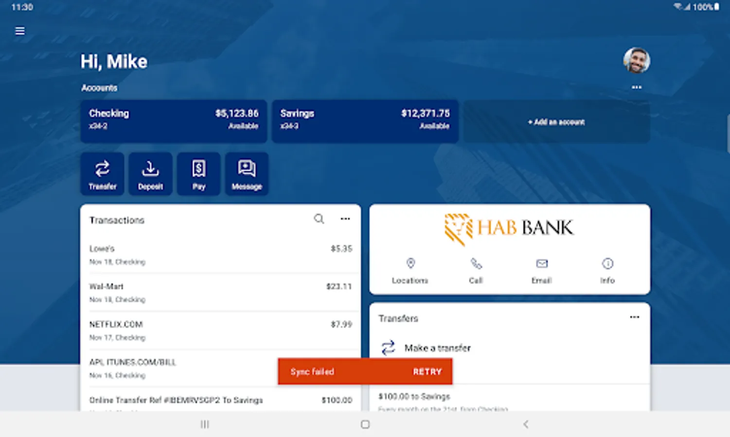 There is no charge from HAB Bank, but message and data rates may apply. Such charges include those from your communications service provider. Delivery of text messages may be delayed for various reasons, including service outages affecting your phone, wireless or internet provider, technology failures, and system capacity limitations. Any time you review your balances, keep in mind that it may not reflect all transactions including recent debit card transactions or checks you have written.