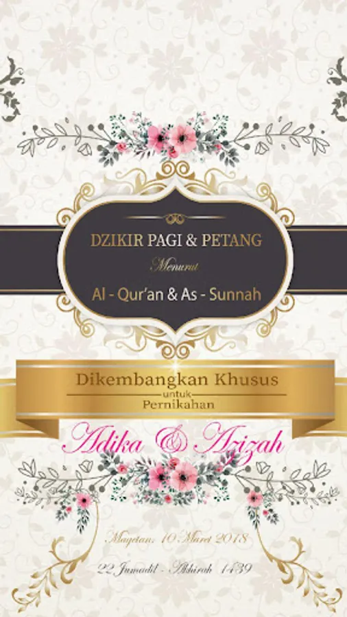 Dhikr morning and evening is an application developed specifically for a wedding gift and Azizah Adika brother. May be a harmonious family, mawaddah, warrahmah.