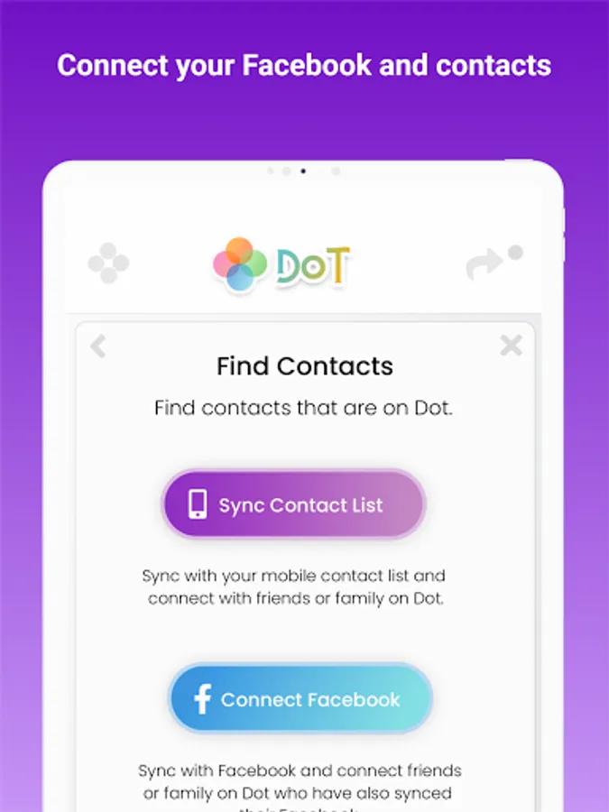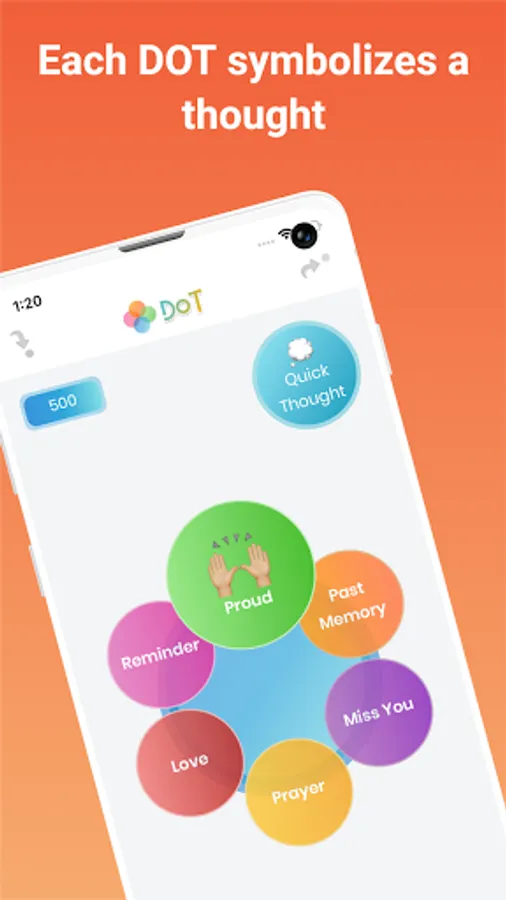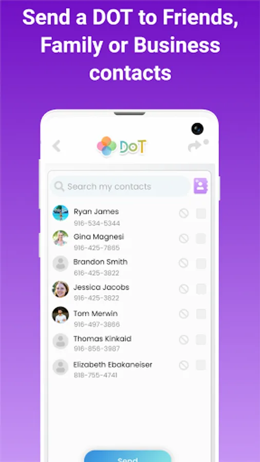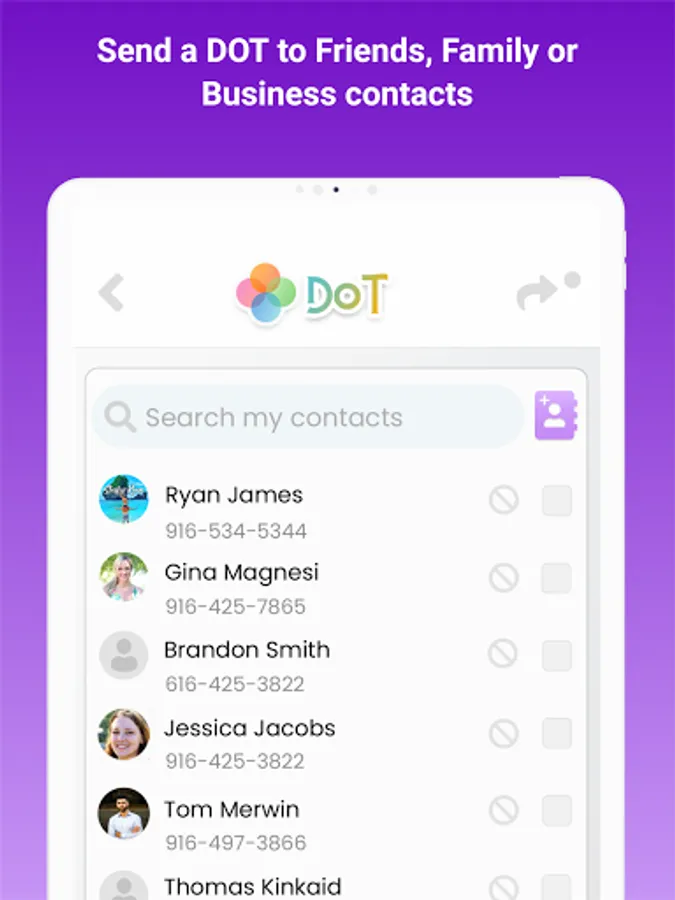 DOT is much like a poking system. Let friends, family, and people in need know that you are thinking about them with a quick selection of a Dot. Sending Dots will save you time communicating while letting somone know you are genuinely thinking of them.