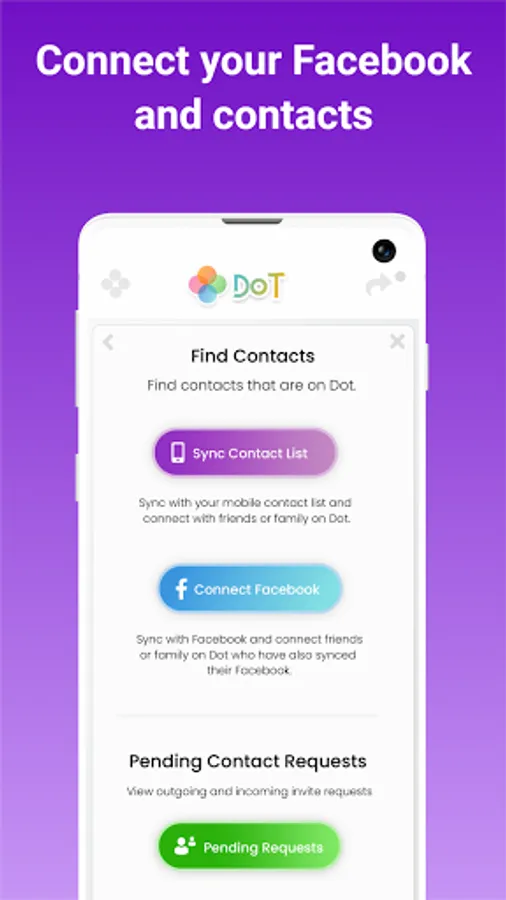 SYNC your phone contacts as well as Facebook friends to stay connected.