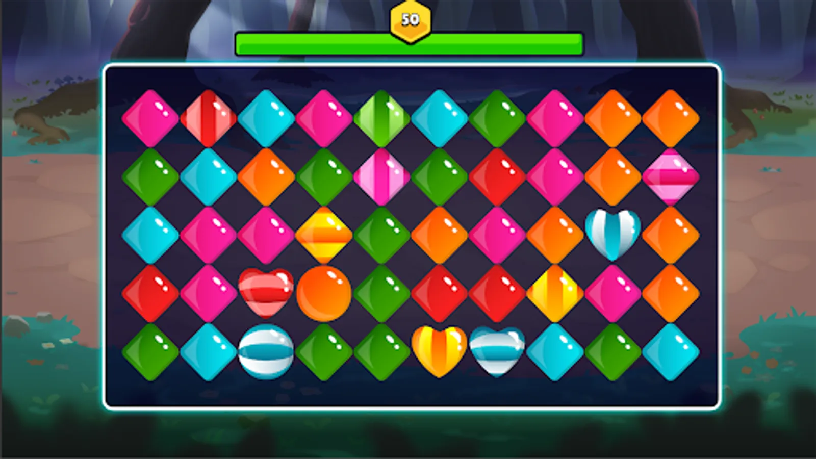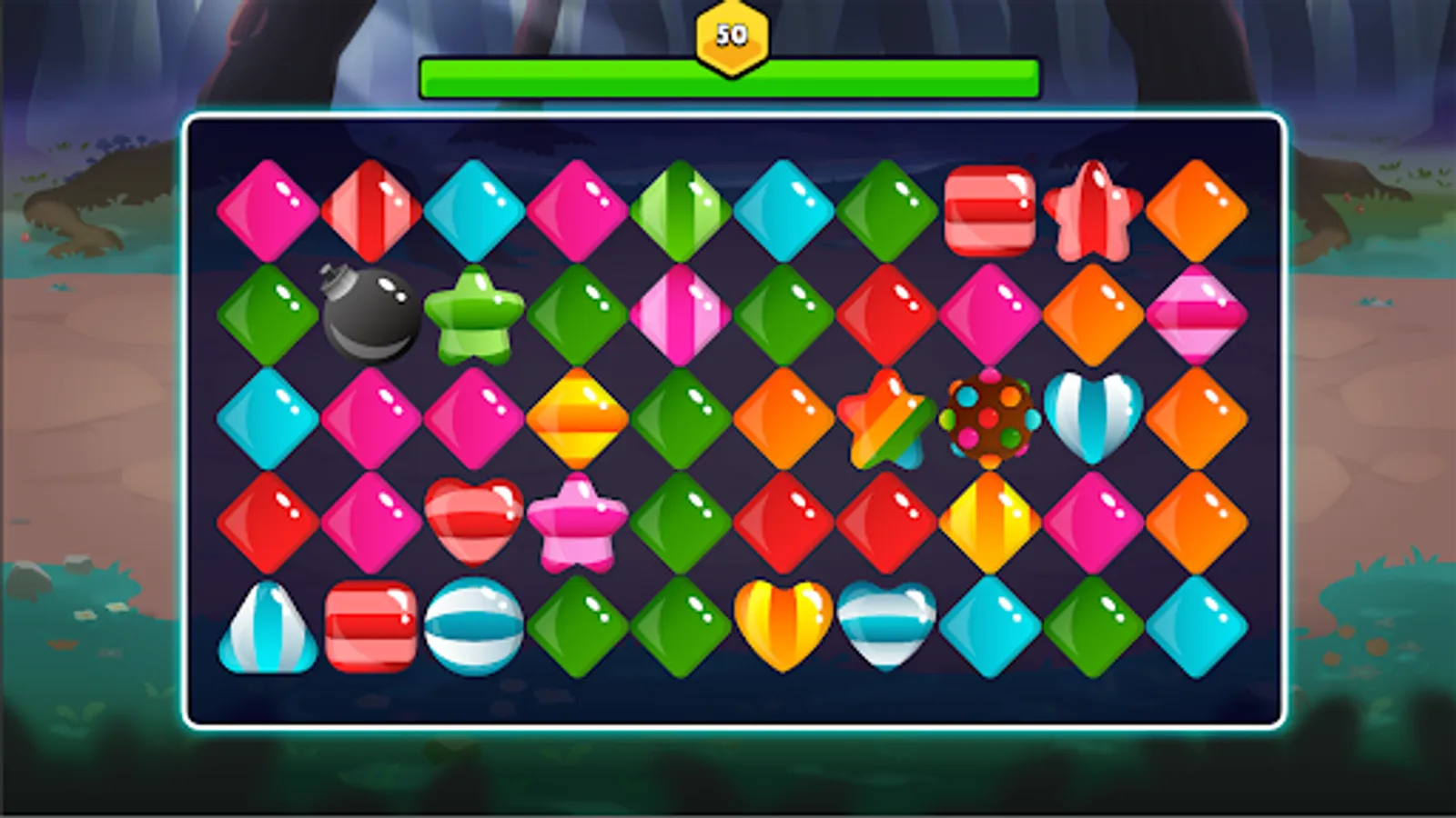 Slide candies across the grid to match 3 or more candies of the same level.