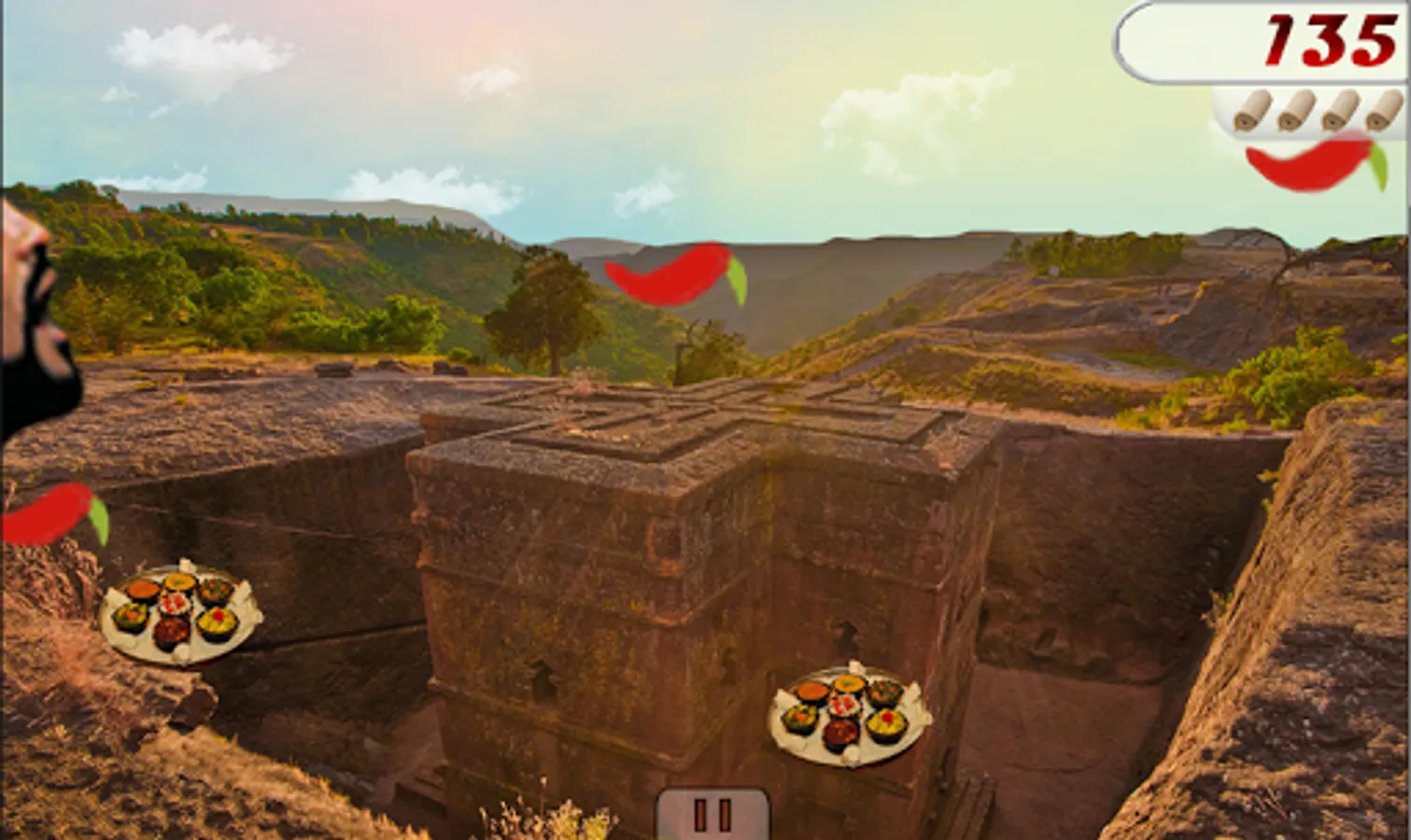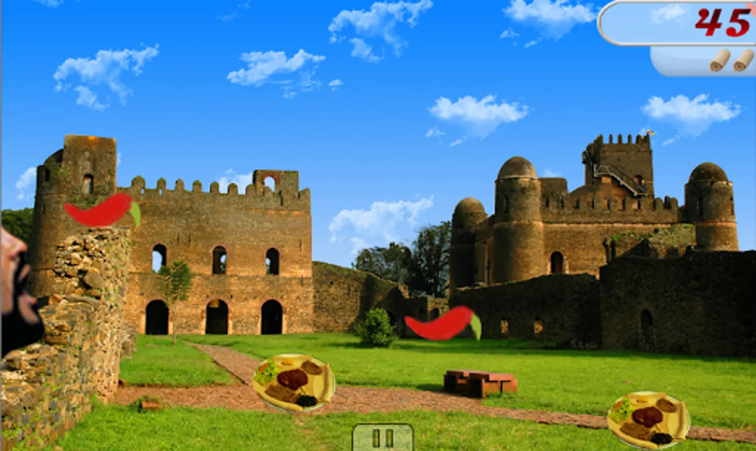The Goal of the Game is to feed the person Ethiopian foods like "enjera" (Amharic term) and stay away from the hot Chili or "Karia" in Amharic.