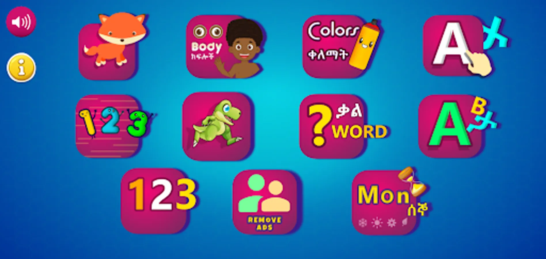 • Fun Amharic Alphabets - including the sound of the alphabets recorded by a native speaker.