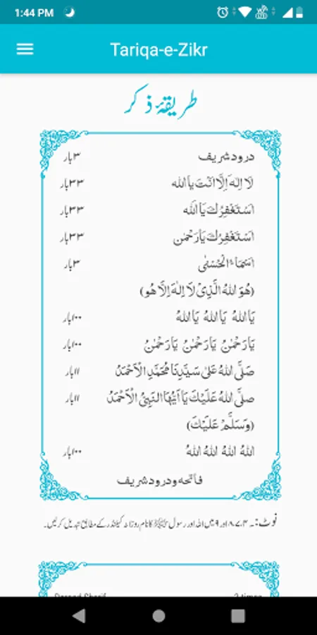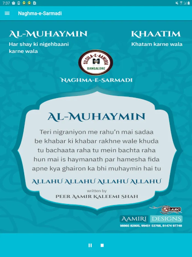 App also consists of many features like Asma ul Husna, Asma un Nabi, Namaz timings, Qibla direction, Shajra of Silsila-e-Aamiria and many more.