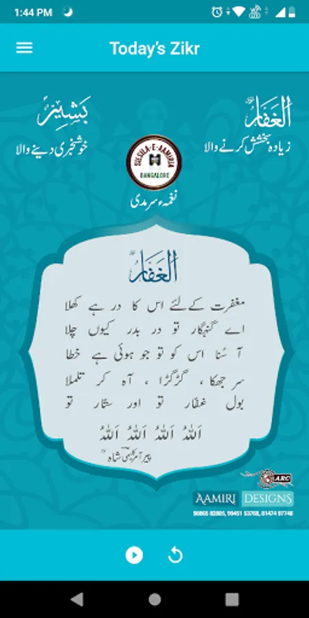 In accordance with the teachings of Quran and Sunnah, Allahu App helps you identify daily Zikr of Silsila-e-Aamiria. The Zikr can be performed at any time of the day/Night. The sole objective of these zikrs is to purify the heart from the evils of the world and fill it with remembrance of Allah ﷻ