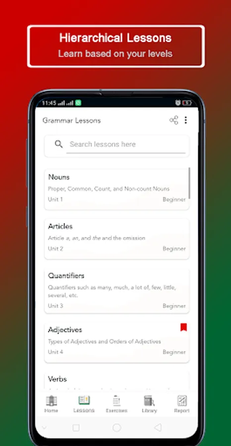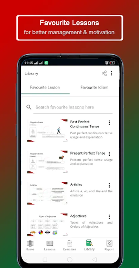 Learn English grammar conveniently within light or dark theme