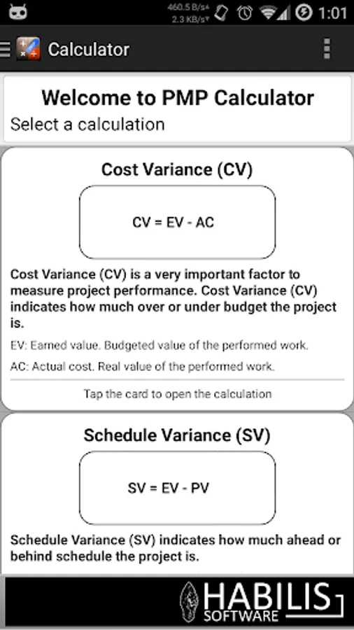 PMP calculator is a specialized free calculator to calculate the formulas of project management professional environment.