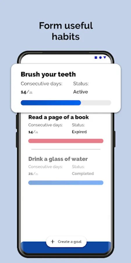Regularity is important in forming a habit, so if you skip the daily mark, the progress is reset, but you can start the counter again. The app will also be useful to those who find it difficult to focus on daily tasks.