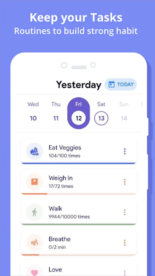 Habito provides you dozens of predefined habit to let you grow and build yourself. 👊