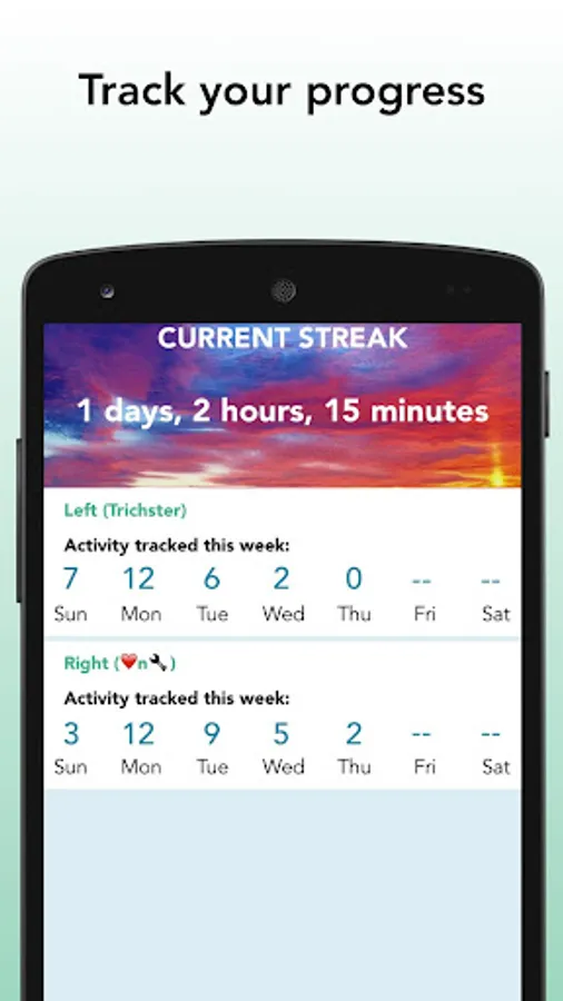Over time we will add additional features to help you analyze progress and learn to replace the behavior you are trying to stop.