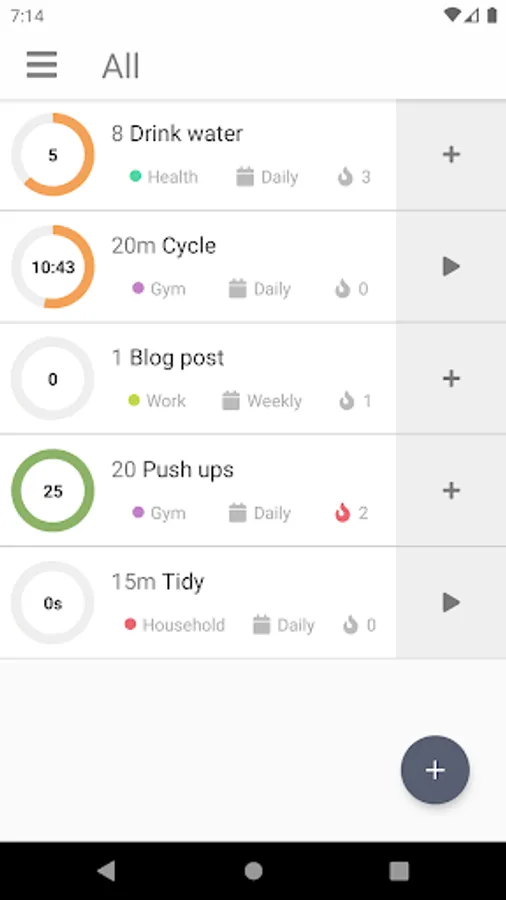 - Groups: Organise your habits into custom groups such as gym, work and home life