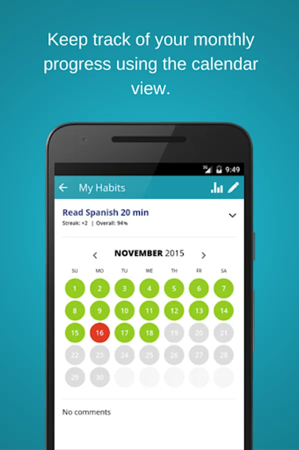 Selected friends can see your progress and help you stay motivated. Hopefully they share some habits with you. In HabitShare you can send your friends awesome gifs like a high five or chest bump to help them stay motivated. A habit tracker has never been more fun! We help accountability partners stay connected.