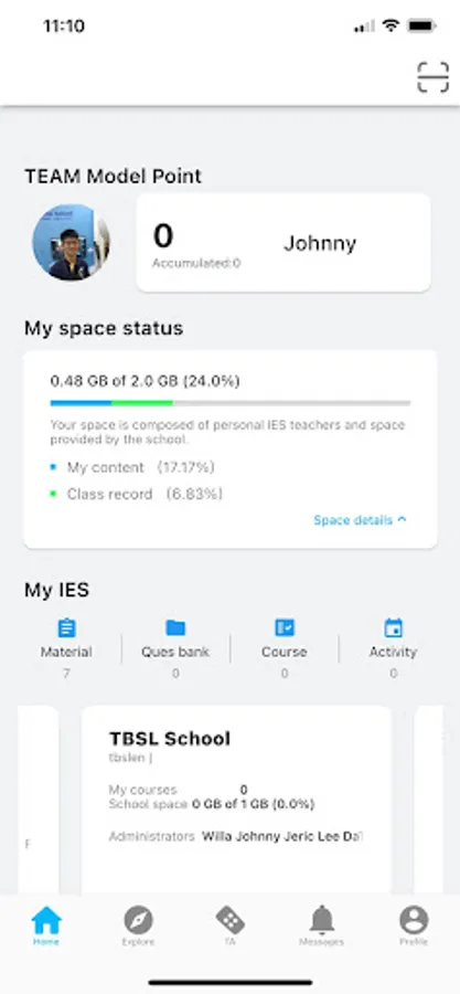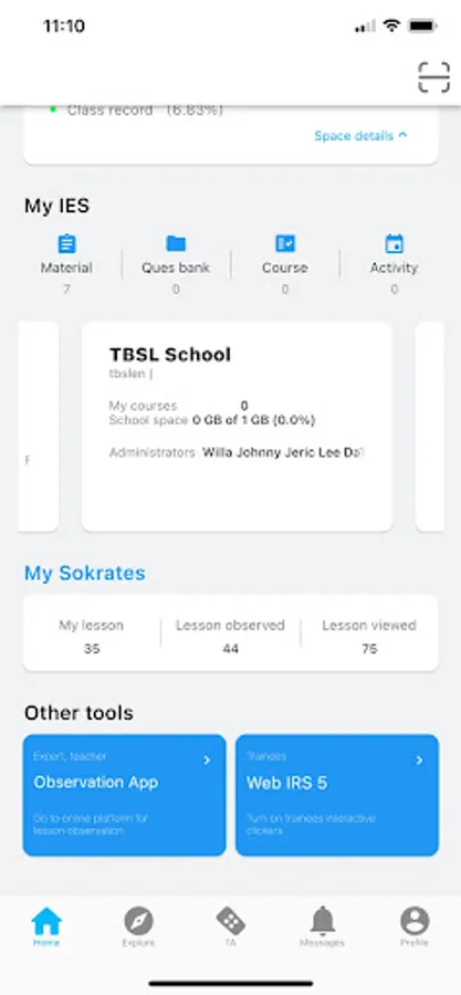 Home: Overview of your rights in TEAM Model world, including points, cloud storage status, my IES education platform, my Sokrates, links to join lesson observation and participating lesson as student.
