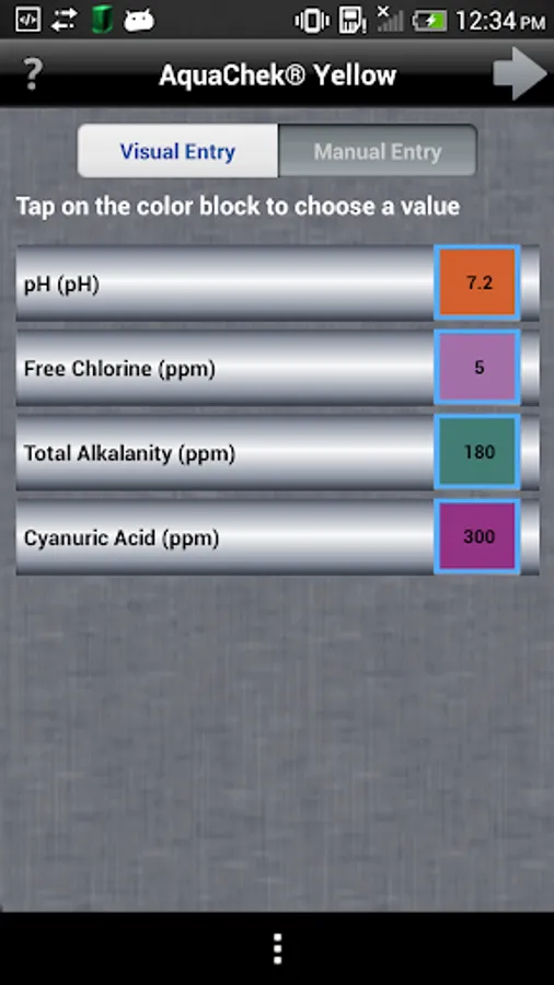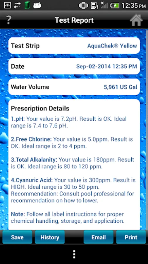 The full AquaChek consumer test strip product line is supported by our AquaChek Smart app that enables users to test and manage water chemistry from their smartphone. Dip your strip then match the pads to the pads on your Android smartphone, hit Prescription and instantly you have a set of step by step directions on what you need to do. User friendly design and intuitive navigation lets users store, email or print customized test results and treatment instructions.