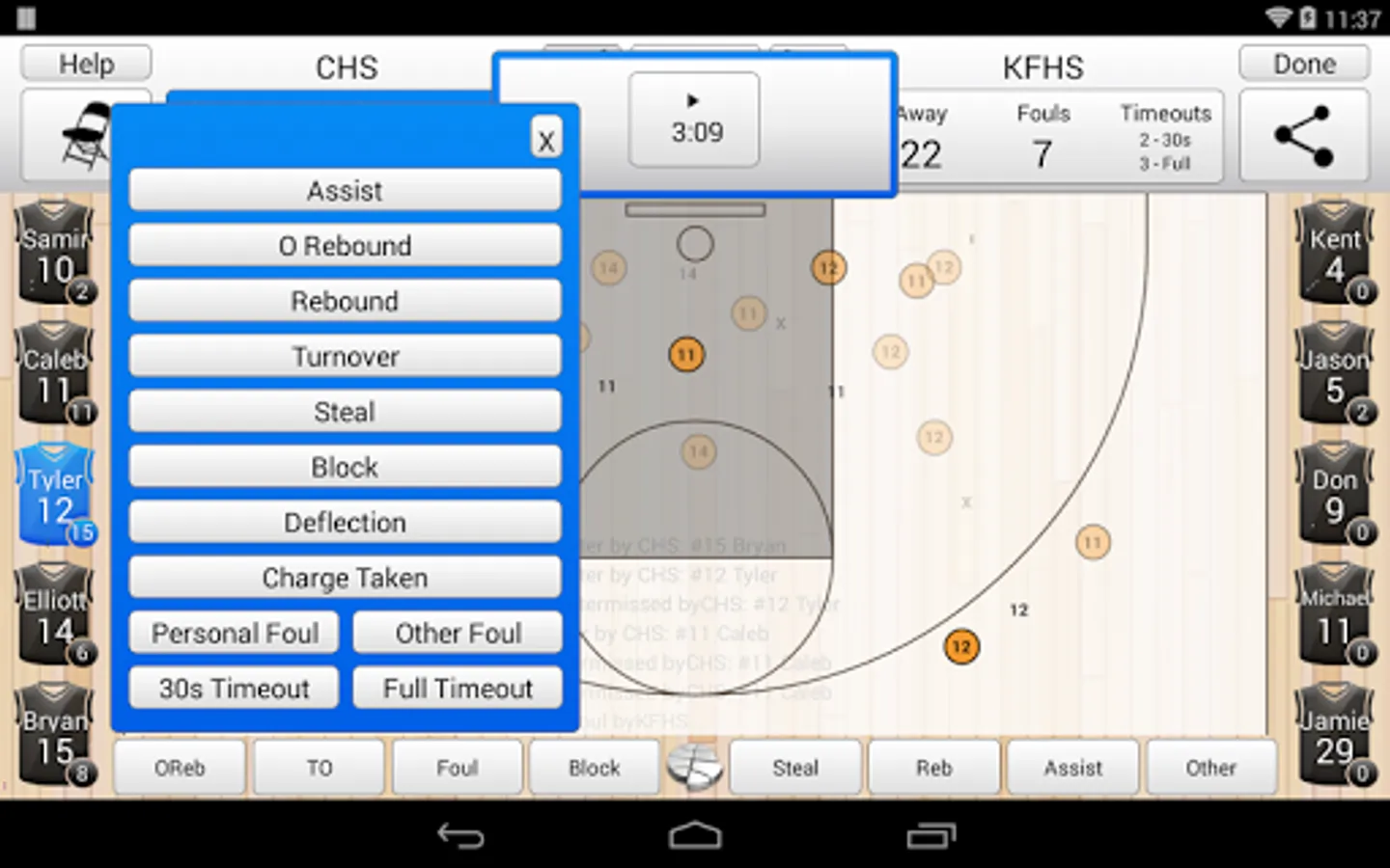 - Add makes, misses, and shot locations with an intuitive touch system.