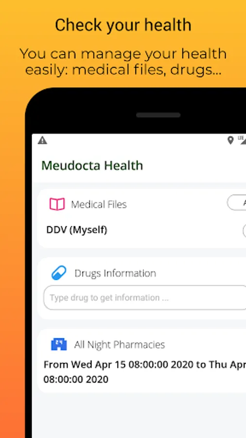 - Nearest medical service: You can use Meudocta to get the nearest medical services (pharmacies, hospitals, laboratories, ...)