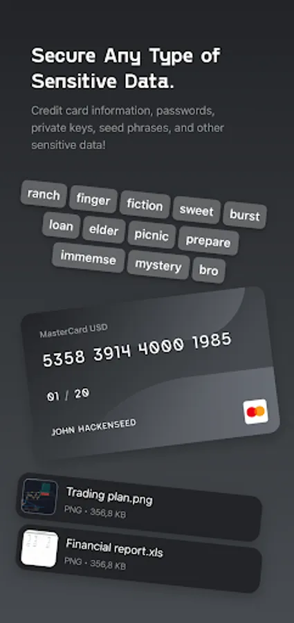 store your Passwords, Seed Phrases, Keys, credit card information, and