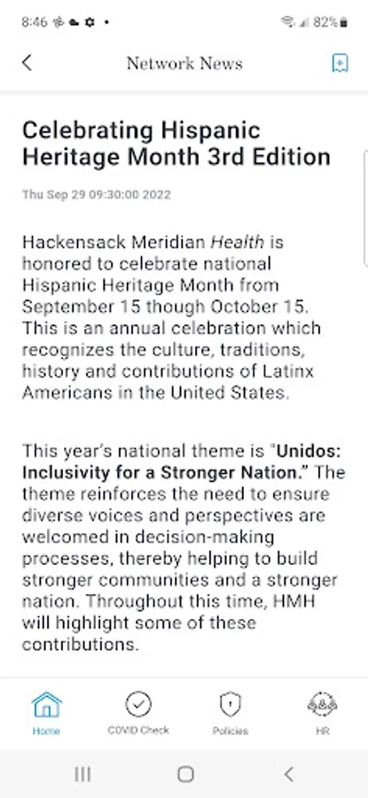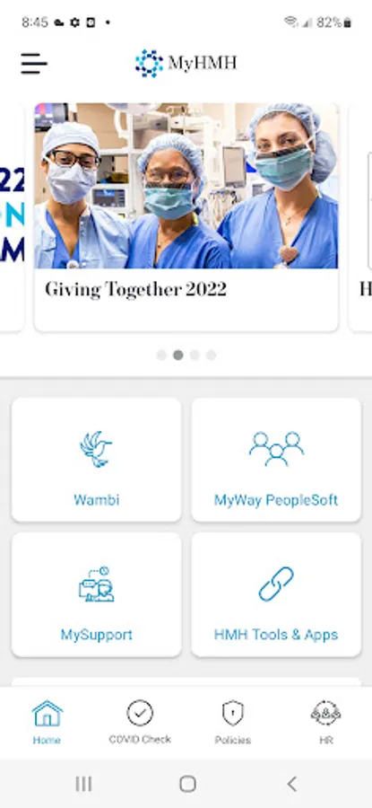 The MyHMH app offers Hackensack Meridian Health's (HMH) team members access to select pieces of the MyHMH Intranet, including many tools and applications, MySupport and MyWay for PTO balances and paycheck information. Team members can also enable push notifications to stay informed.