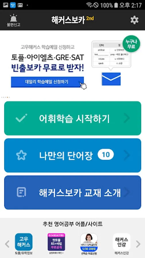 1. Effectively memorize the words of ≪Hackers Vocabulary≫ textbooks through daily quiz!