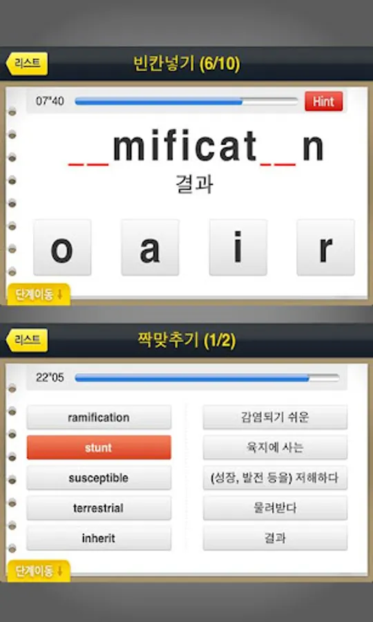 ※ In order to learn the Voca Advanced application from Hacker's Steps, you must first download the learning content once before starting learning.