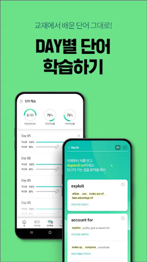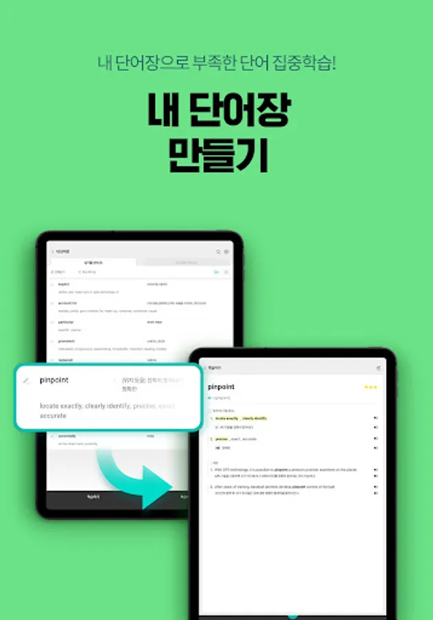 3) You can study until you memorize words perfectly with your own vocabulary (*For free users, the number of saved words is limited)