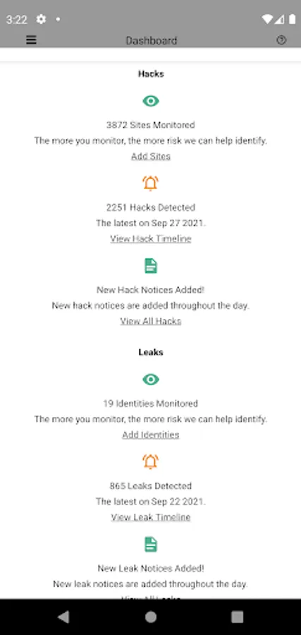 HackNotice is the easiest way to discovery hacks and data leaks that you have been a part of, learn more about your online threats, and take action to protect yourself. HackNotice instantly alerts you to when hackers discover your online identity, providing the critical information and training that you need to protect yourself from account takeover and fraud.