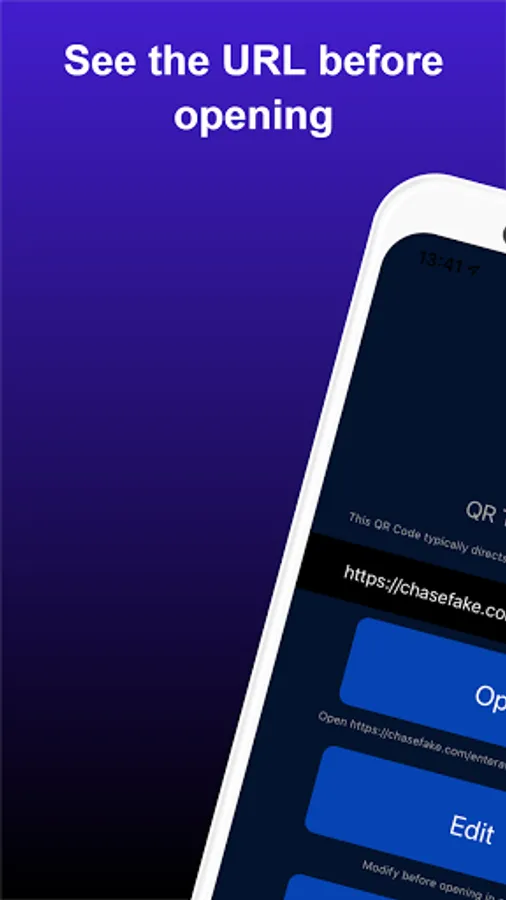 Use Hackqr to scan any QR Code and it will display the embedded URL before opening the browser. You have the ability to