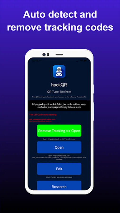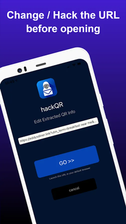 Hackqr (pronouced 'Hack kwer') gives you visibility and control over what your phone does after opening a QR Code.